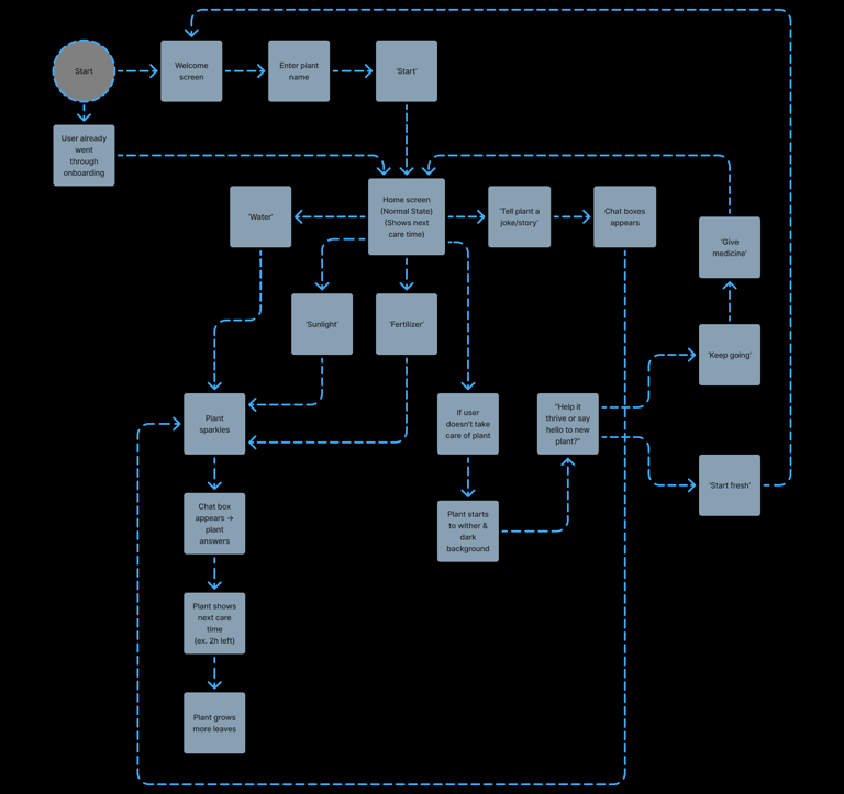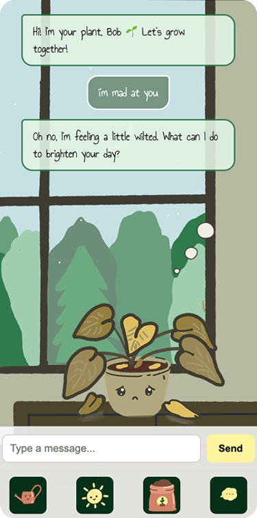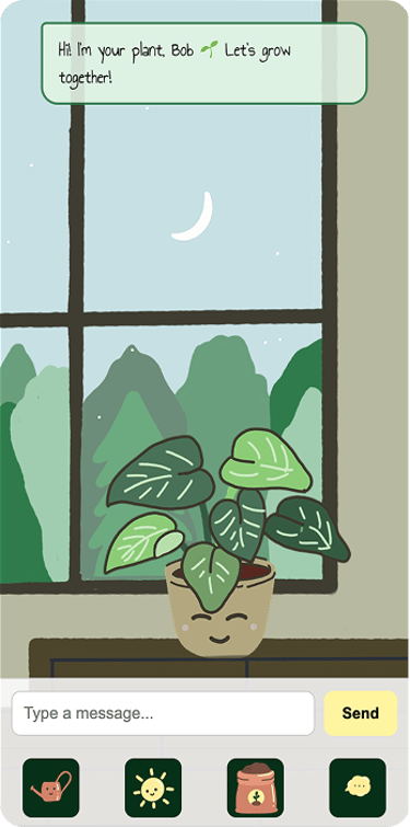A playful, Tamagotchi-style AI plant companion that responds to your care and conversations with personality-filled messages to make daily engagement fun.
