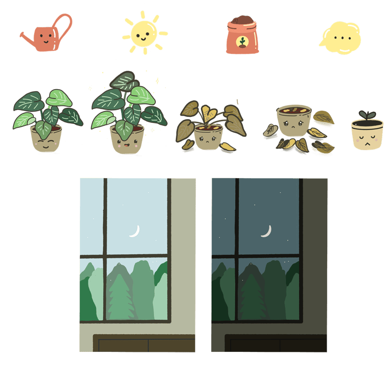 Plant Personality: Each plant has a unique personality that grows and changes based on interactions. If you don’t interact, it can get sad.